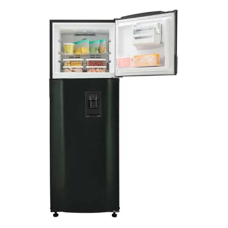 | Características técnicas | Nevera No Frost de 311 litros de capacidad con diseño de congelador superior y manija integrada, sistema de refrigeración sin escarcha para temperatura uniforme, compresor Inverter que optimiza el consumo energético y reduce el ruido, panel de control digital interno para ajustes precisos de temperatura, dispensador de agua manual y fabricador de hielo para mayor comodidad, iluminación LED interna de alta visibilidad, múltiples anaqueles de vidrio templado y compartimientos en puertas para una organización eficiente, cajón para frutas y verduras con control de humedad, refrigerante ecológico R600a, acabado negro moderno y garantía extendida en el compresor. |