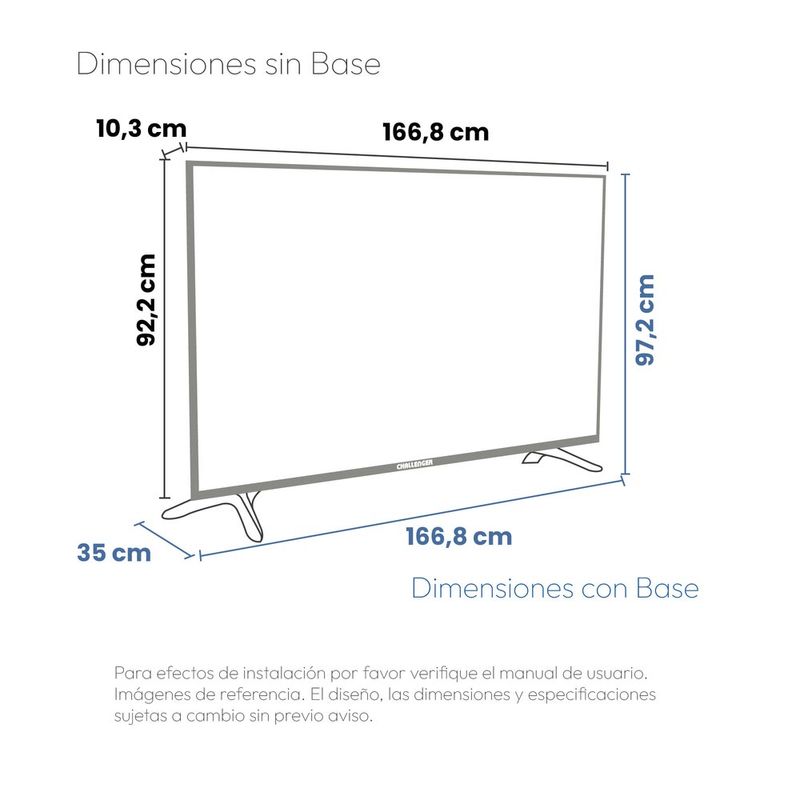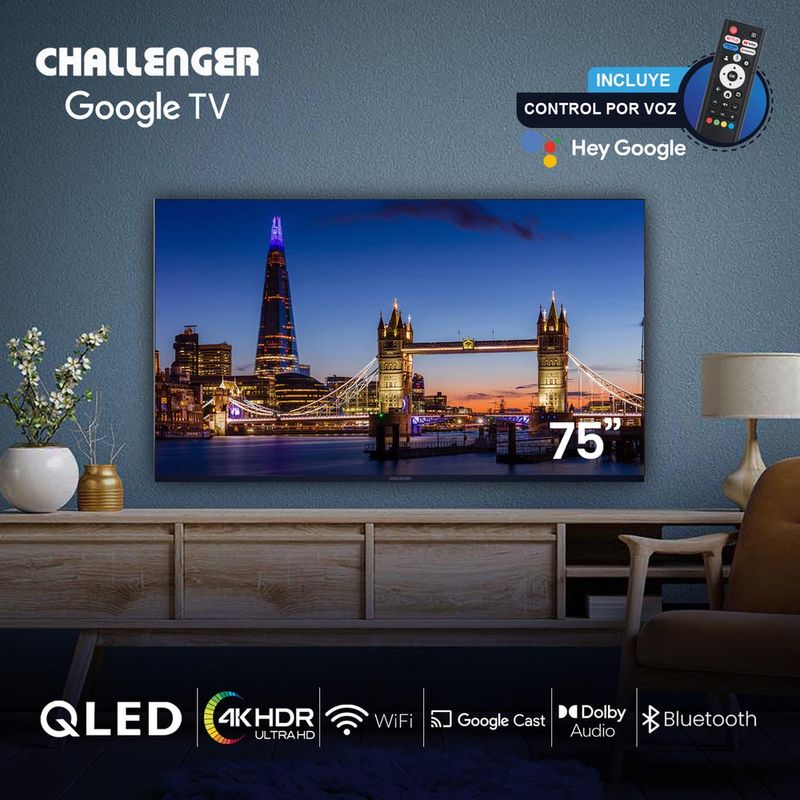 Televisor Challenger 75 Pulgadas Qled UHD BT Google Tv T2 75KG290