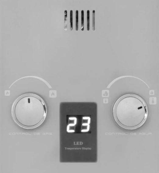 | Características técnicas | Display para visualizar la temperatura de salida del agua, dispositivo de seguridad por ausencia de oxígeno (ods), visor de llama para observar el funcionamiento del quemador, perillas ergonómicas de fácil manejo para controlar la temperatura del agua, dispositivo de seguridad por sobrecalentamiento de agua (bimetálico), válvula de alivio por sobrepresión de agua, encendido automático operado por dos baterías de 1,5 vc.d / tamaño d c/u, dispositivo de seguridad (termopar), que cierra el paso de gas si no hay llama en el piloto, para evitar escapes de gas. |