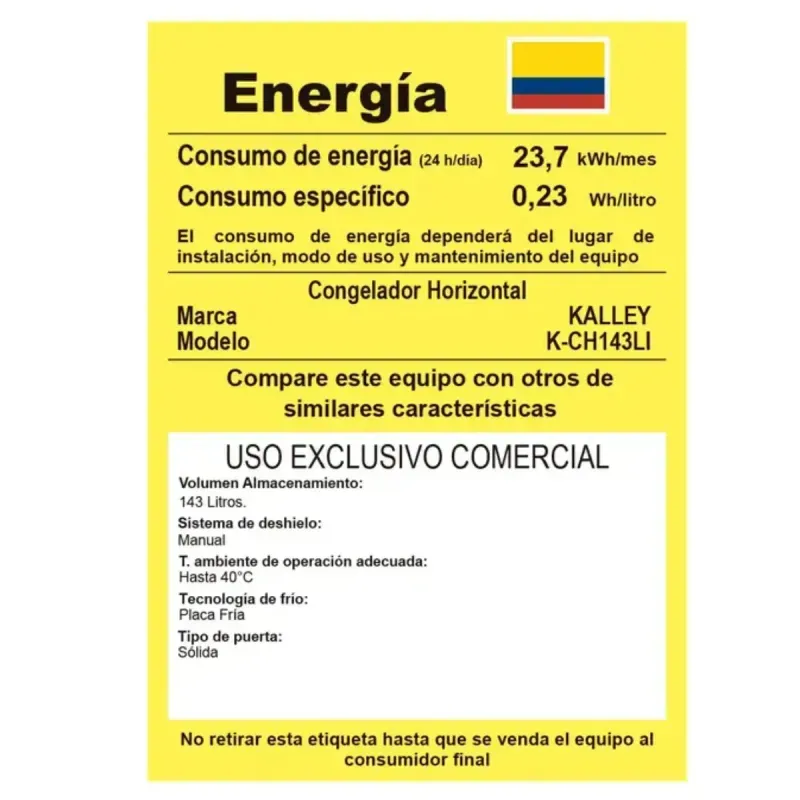 Congelador Kalley Horizontal 142 Litros KCH143LI Blanco
