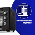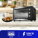 | Características técnicas | Horno Tostador KALLEY K-HE26L2 26 litros negro + fuentes de alimentacion de energia: energía eléctrica + potencia: 1500 + capacidad: 0.92 pies cubicos + voltaje: rango entre 110 v y 120 v + tonalidad de color: negro + niveles de coccion: 5 niveles + no. programas: 5 programas + tiempo maximo del cronometro: 90 minutos + tipo de panel de control: manual. |