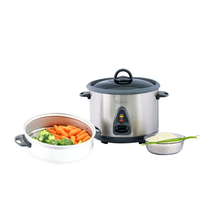 | Características técnicas | Olla arroz kalley k-rcs18 1.8l, potencia 700w, cuerpo en acero inoxidable, incluye vaporera en aluminio. garantia 2 años |